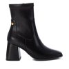 Botín de mujer, de la marca Xti. Fabricado en material que imita la piel. Cierre mediante cremallera lateral. Caña elástica para favorecer el ajuste. Tacón ancho de 7 cm y suela antideslizante. Punta afilada que aporta un toque sofisticado al modelo. Este modelo ha obtenido el certificado vegano por la organización mundial PETA (Organización de los derechos de los animales).