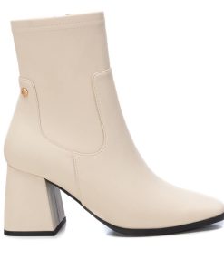 Botín de mujer, de la marca Xti. Fabricado en material que imita la piel. Cierre mediante cremallera lateral. Caña elástica para favorecer el ajuste. Tacón ancho de 7 cm y suela antideslizante. Punta afilada que aporta un toque sofisticado al modelo. Este modelo ha obtenido el certificado vegano por la organización mundial PETA (Organización de los derechos de los animales).