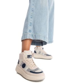 Botín de mujer, de la marca Xti. Fabricada en diversos materiales textiles combinados con material que simula a la piel. Cordones regulables al tono. Botín estilo casual para combinar con tus looks del día a día. Este modelo ha obtenido el certificado vegano por la organización mundial PETA (Organización de los derechos de los animales).