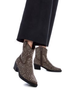 Botín estilo cowboy de mujer, de la marca Xti. Fabricado en antelina con piedras decorativas de fantasía. Cierre cremallera. Con punta afilada y un tacón ancho de 5 cm etilo cowboy y suela antideslizante. Este modelo ha obtenido el certificado vegano por la organización mundial PETA (Organización de los derechos de los animales).