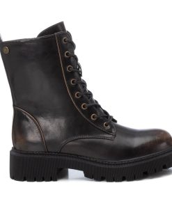 Botín de mujer, de la marca Xti. Fabricado en un material que imita la piel. Cierre mediante cremallera lateral y cordones ajustables para un mayor ajuste. Tirador trasero para facilitar la puesta. Piso track con tacón de 4 cm. Un botín básico para dar un toque a tus looks de invierno. Este modelo ha obtenido el certificado vegano por la organización mundial PETA (Organización de los derechos de los animales).