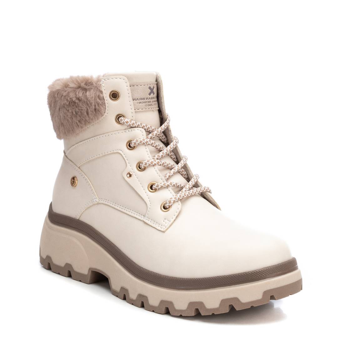 Botín de mujer, de la marca Xti. Fabricado en un material que imita la piel. Cierre lateral mediante cremallera y cordones para un mayor ajuste y comodidad. Suela gruesa y dentada antideslizante. Bota casual ideal para este invierno. Con plantilla extraíble. Este modelo ha obtenido el certificado vegano por la organización mundial PETA (Organización de los derechos de los animales).