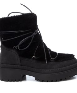 Botín de mujer, de la marca Xti. Fabricado en un material que imita la piel. Cierre mediante cremallera lateral y cordones ajustables. Suela gruesa, dentada y antideslizante. Este modelo ha obtenido el certificado vegano por la organización mundial PETA (Organización de los derechos de los animales).