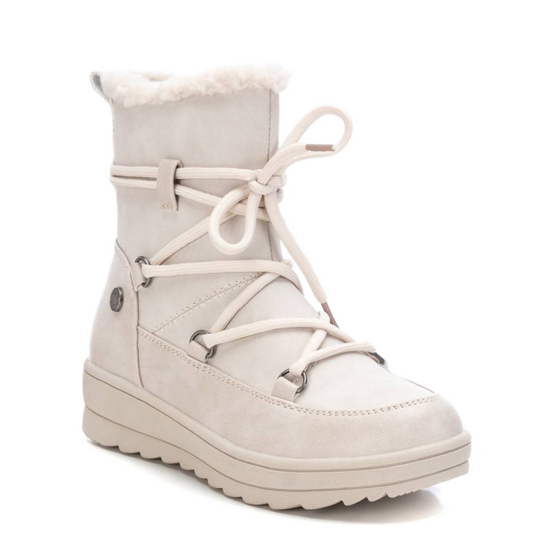 Botín de niña, de la marca Refresh. Fabricado en material que imita la piel con cálido forro de pelito ideal para los días más fríos. Cierre mediante cremallera lateral. Cordones decorativos. Tirador trasero para facilitar la puesta. Suela gruesa de goma antideslizante. Este modelo ha obtenido el certificado vegano por la organización mundial PETA (Organización de los derechos de los animales).