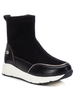 Botín de niña, de la marca Xti Kids. Fabricado en altelina elástica con refuerzos de material que imita a la piel en puntera y talón. Cierre mediante cremallera interior para facilitar la puesta. Altura de la caña: 11 cm. Gruesa suela de goma antideslizante. Este modelo ha obtenido el certificado vegano por la organización mundial PETA (Organización de los derechos de los animales).