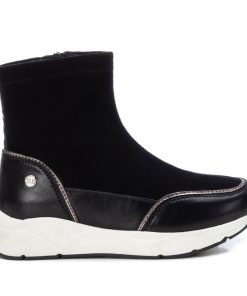 Botín de niña, de la marca Xti Kids. Fabricado en altelina elástica con refuerzos de material que imita a la piel en puntera y talón. Cierre mediante cremallera interior para facilitar la puesta. Altura de la caña: 11 cm. Gruesa suela de goma antideslizante. Este modelo ha obtenido el certificado vegano por la organización mundial PETA (Organización de los derechos de los animales).