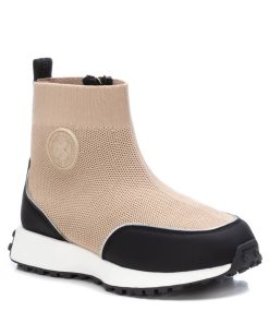 Botín de niña, de la marca Xti Kids. Fabricado en cómodo tejido elástico con cremallera interior para facilitar la puesta. Detalle de goma con el logo en el lateral. Altura de la caña: 10 cm. Con suela de goma antideslizante. Este modelo ha obtenido el certificado vegano por la organización mundial PETA (Organización de los derechos de los animales).