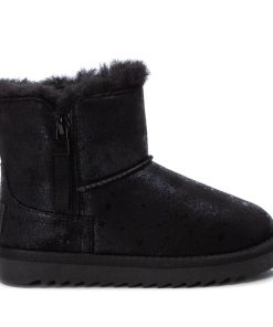 Botín tipo austraniala de niña, marca Xti Kids. Fabricado en tejido brillante. Cremallera exterior con función para facilitar la puesta. Interior de pelito para los días más frios. Aislante suela de goma antideslizante. Altura caña: 11 cm. Este modelo ha obtenido el certificado vegano por la organización mundial PETA (Organización de los derechos de los animales).