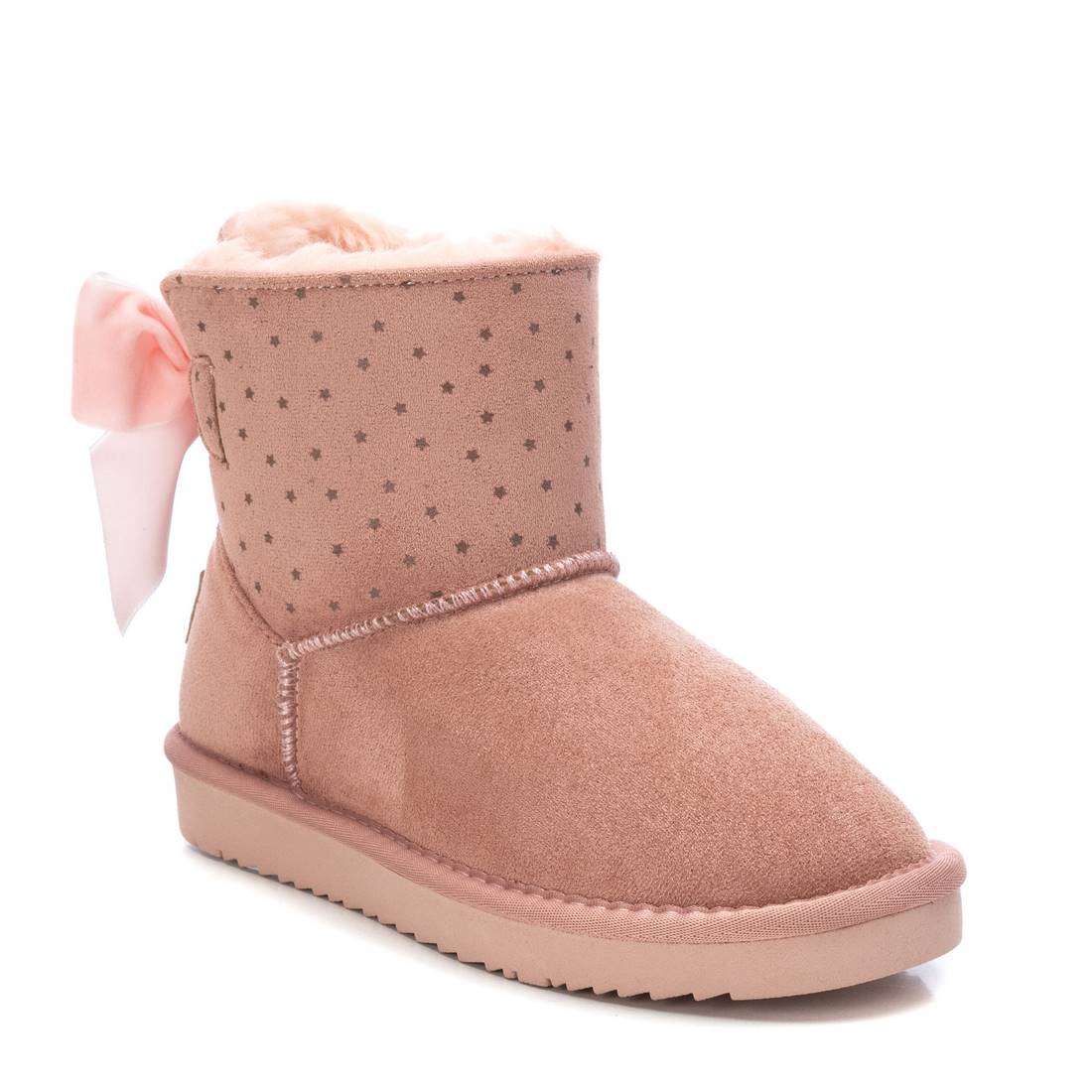 Botín de niña tipo austruliana, de la marca Xti Kids. Fabricado en suave antelina con estrellitas decorativas. Interior de pelo. Gruesa suela canalada de goma antideslizante. Cuenta con elástico para facilitar la puesta. Este modelo ha obtenido el certificado vegano por la organización mundial PETA (Organización de los derechos de los animales).