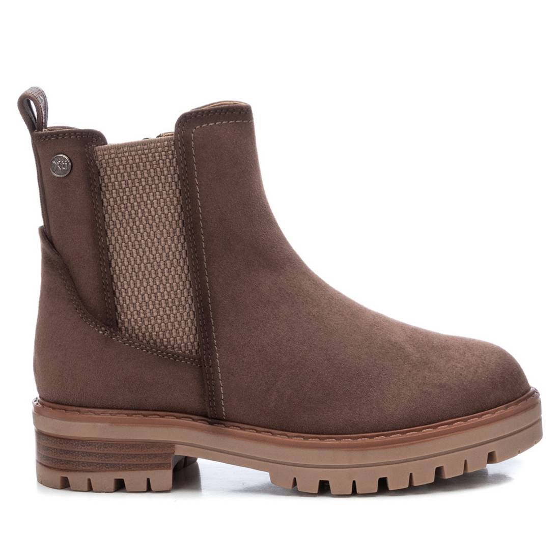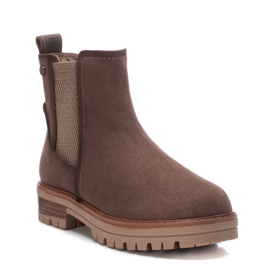 Botín de niña de la marca Xti Kids. Fabricado en antelina. Con suela de goma antideslizante de 4 cm de grosor. Cierre mediante cremallera y elastico lateral.Este modelo ha obtenido el certificado vegano por la organización mundial PETA (Organización de los derechos de los animales).