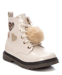 Botín de niña de la marca Xti. Fabricado en charol, con decoración de corazones en diferentes materiales, combina perfecto con todos sus outfits. Con cierre mediante cremallera y además pompom decorativo en los cordones.Suela de goma antideslizante.Este modelo ha obtenido el certificado vegano por la organización mundial PETA (Organización de los derechos de los animales).