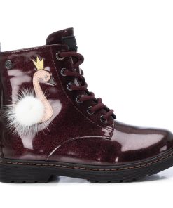 Botín de niña, de la marca Xti Kids. Fabricado en glitter forrado con plástico transparente. Cierre mediante cremallera lateral y cordones ajustables. Tirador trasero para facilitar la puesta. Detalle decorativo en el lateral. Suela de goma antideslizante. Este modelo ha obtenido el certificado vegano por la organización mundial PETA (Organización de los derechos de los animales).
