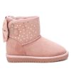 Botín de niña, de la marca Xti Kids. Fabricado en suave antelina decorada con estrellitas metalizadas. Lazo trasero decorativo. Gruesa suela dentada de goma antideslizante. Este modelo ha obtenido el certificado vegano por la organización mundial PETA (Organización de los derechos de los animales)
