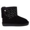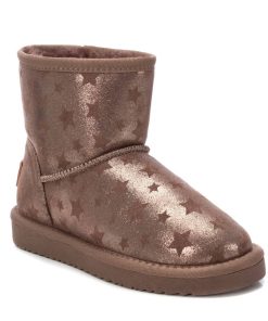 Botín de niña, de la marca Xti kids. Fabricado en material metalizado con estrellas decorativas a contraste. Forro de pelo para proteger del frío. Gruesa suela canalada de goma antideslizante. Este modelo ha obtenido el certificado vegano por la organización mundial PETA (Organización de los derechos de los animales)