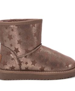 Botín de niña, de la marca Xti kids. Fabricado en material metalizado con estrellas decorativas a contraste. Forro de pelo para proteger del frío. Gruesa suela canalada de goma antideslizante. Este modelo ha obtenido el certificado vegano por la organización mundial PETA (Organización de los derechos de los animales)