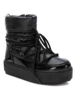 Botín de nieve de la marca Xti Kids. Fabricado en textil combinado con charol. Cierre mediante cremallera interior y cordones para mayor ajuste. Aislante suela de goma antideslizante ideal para esta temporada. Con plantilla extraíble. Este modelo ha obtenido el certificado vegano por la organización mundial PETA (Organización de los derechos de los animales).