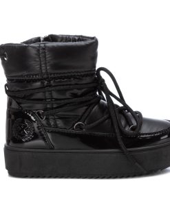 Botín de nieve de la marca Xti Kids. Fabricado en textil combinado con charol. Cierre mediante cremallera interior y cordones para mayor ajuste. Aislante suela de goma antideslizante ideal para esta temporada. Con plantilla extraíble. Este modelo ha obtenido el certificado vegano por la organización mundial PETA (Organización de los derechos de los animales).