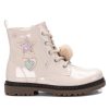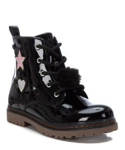 Botín de niña de la marca Xti Kids, fabricado en charol. Con cremallera interior para facilitar el uso y comodidad. Cordones al tono con un pompón decorativo. Detalles con glitter. Tirador trasero para facilitar su puesta. Suela de goma antideslizante.