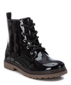 Botín de niña, de la marca Xti Kids. Fabricado en charol. Cierre mediante cremallera interior, con cordones regulables. Tirador trasero para facilitar la puesta. Gruesa suela de goma antideslizante.