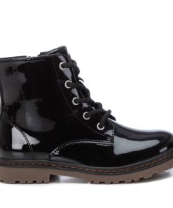 Botín de niña, de la marca Xti Kids. Fabricado en charol. Cierre mediante cremallera interior, con cordones regulables. Tirador trasero para facilitar la puesta. Gruesa suela de goma antideslizante.