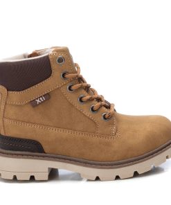 Botín de niño, de la marca Xti Kids. Fabricado en material que imita a la piel. Cierre mediante cremallera interior con cordones regulables para un mejor ajuste. Caña de 9 cm. Con suela de goma antideslizante. Este modelo ha obtenido el certificado vegano por la organización mundial PETA (Organización de los derechos de los animales).