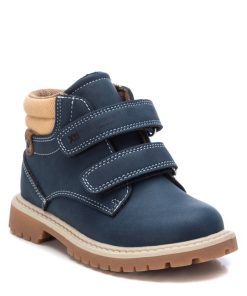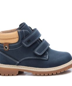 Botín de niño, de la marca Xti Kids. Fabricado en material que imita a la piel. Collarín textil acolchado. Cierre mediante dos tiras adherentes. Grueas suela dentada de goma antideslizante. Altura caña: 7 cm. Este modelo ha obtenido el certificado vegano por la organización mundial PETA (Organización de los derechos de los animales).