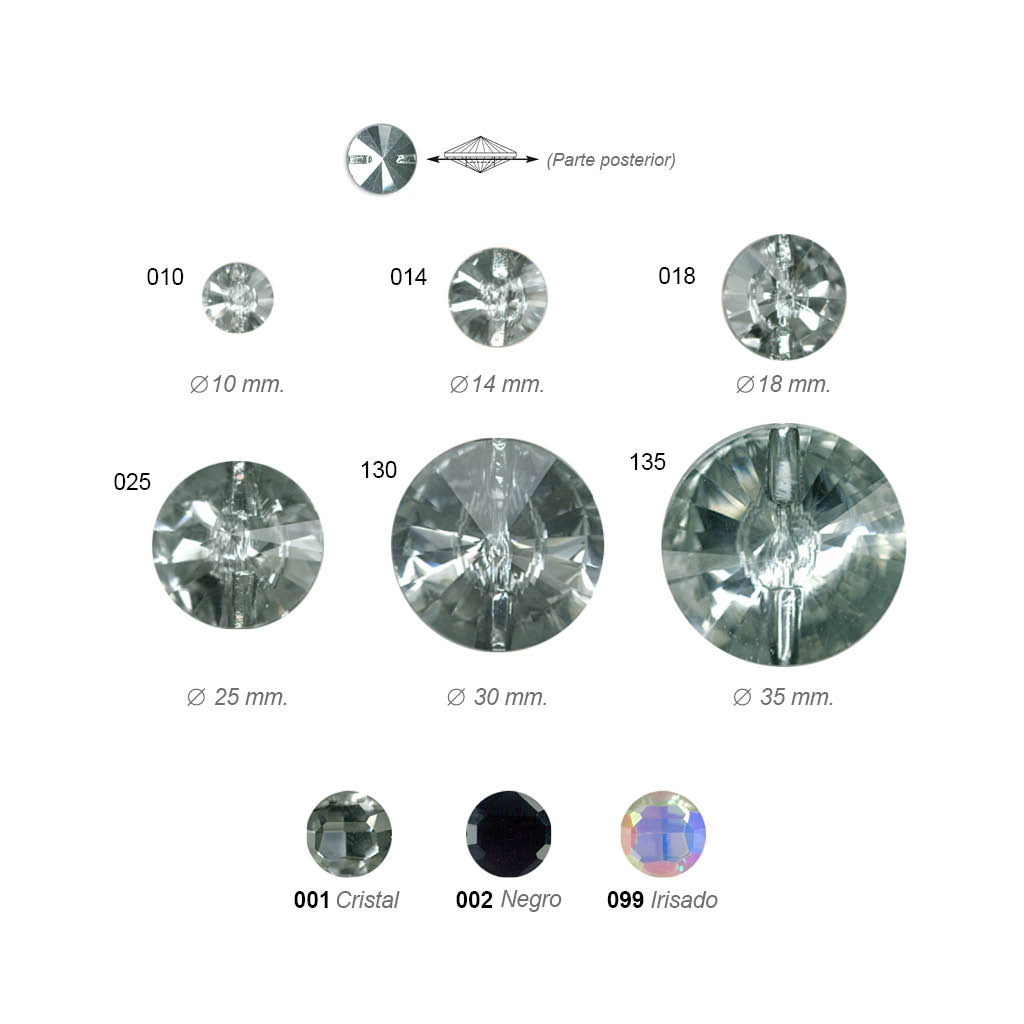 Botones de cristal redondo. Modelo con agujero pasante en la parte posterior.