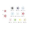 Miden 18 mm Ø y llevan dos agujeritos por si los quieres coser.
