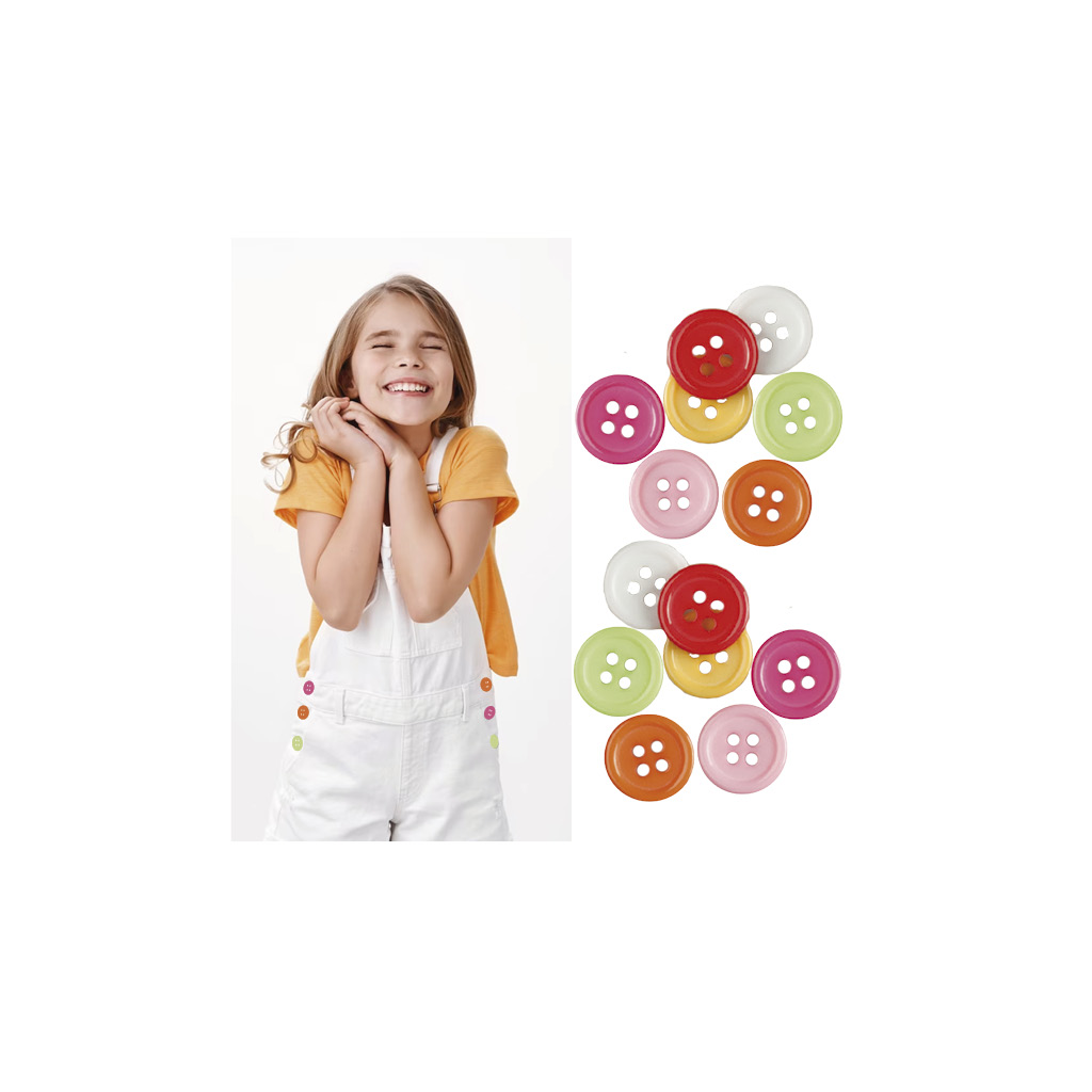 Miden 13 mm Ø y llevan cuatro agujeritos por si los quieres coser.