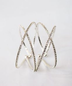 R19/3098- Preciosa y original pulsera de fiesta, brazalete. Se trata de un brazalete doble, realizado en metal ligero plateado. Presenta una original forma y está decorado a base de pequeños cristales blancos. ¡Queda espectacular!