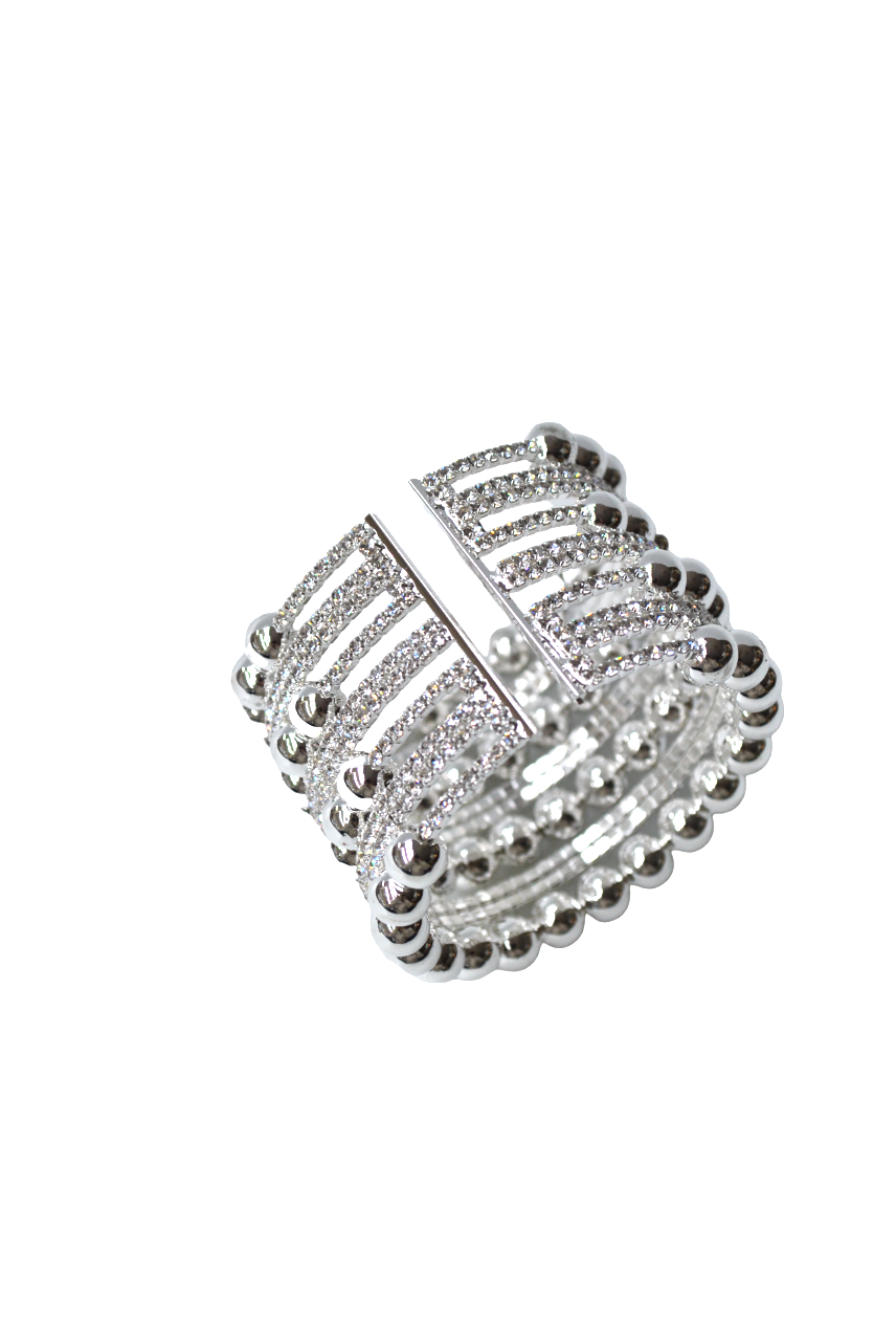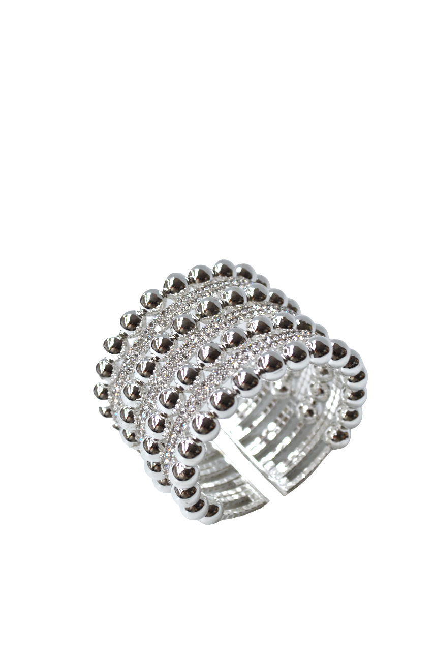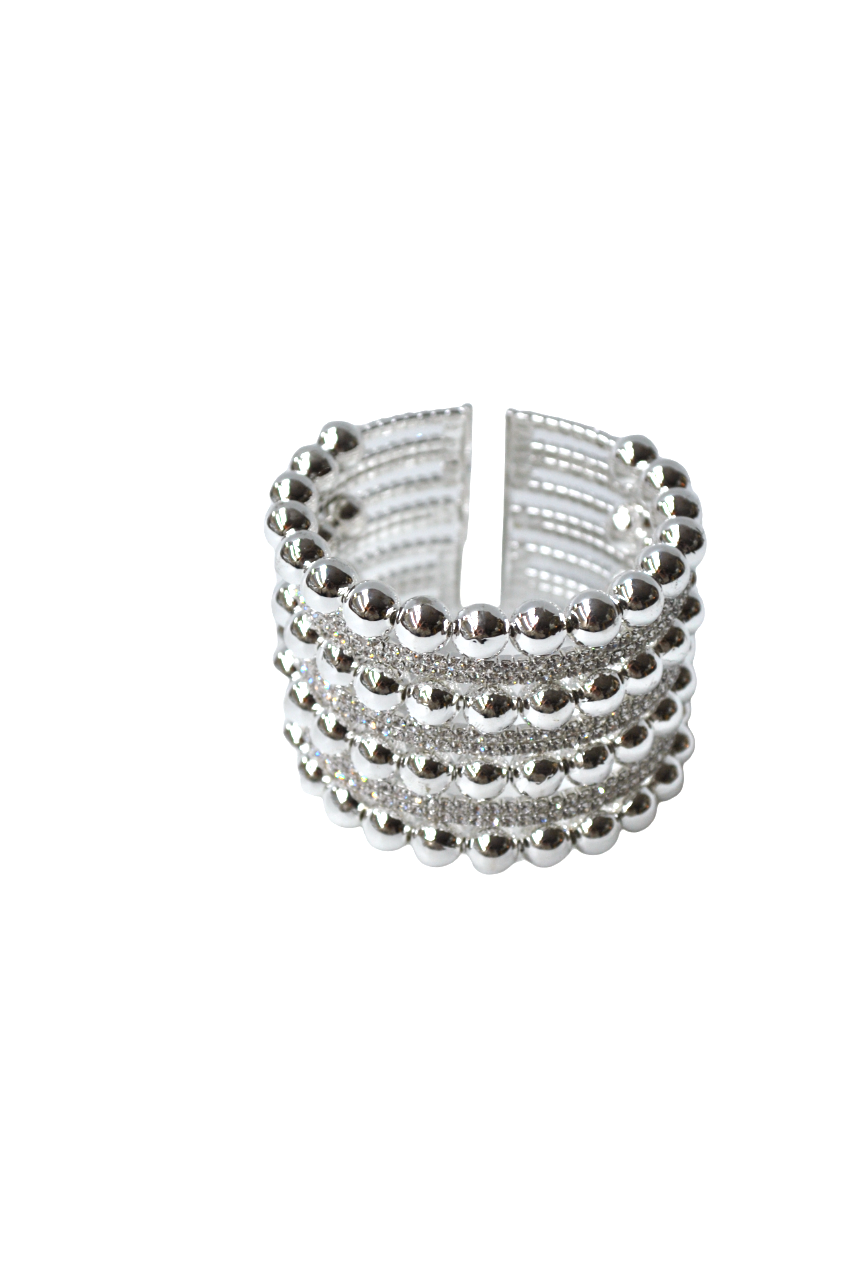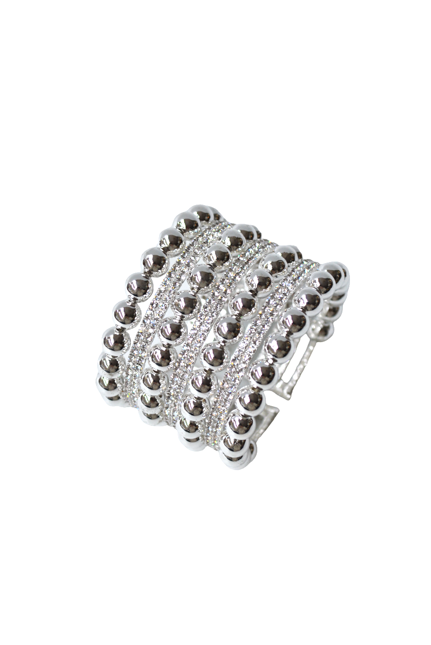 VV0924075813 – Bonita pulsera de fiesta o brazalete de fiesta plateado. Se trata de un brazalete montado sobre bisutería plateada con varias vueltas en la muñeca y decorado con bolitas plateadas y pequeños y elegantes cristales blancos. ¡Queda preciosa!