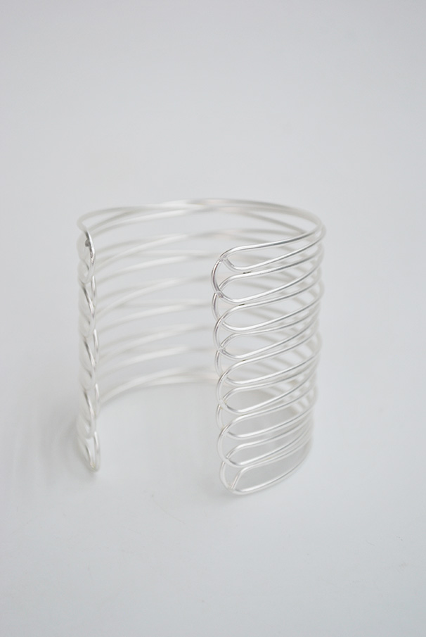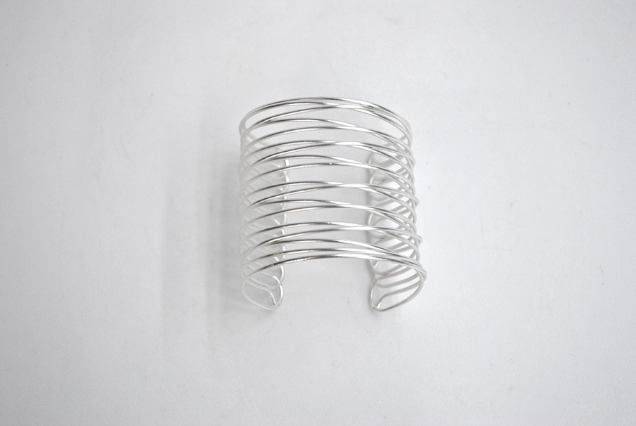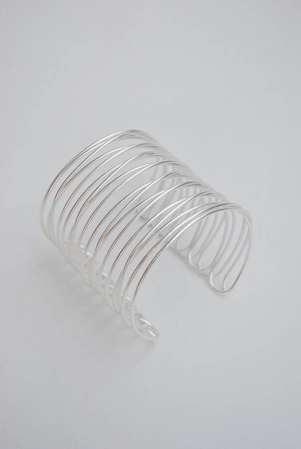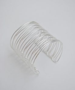 R03/5297 – Bonita pulsera brazalete con varias tiras, fabricado en metal ligero plateado mate.
