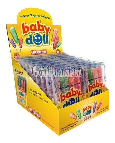 Chupetin Baby Doll Blister x 4 Unidades sabores Manzana, Naranja, Uva y Cereza