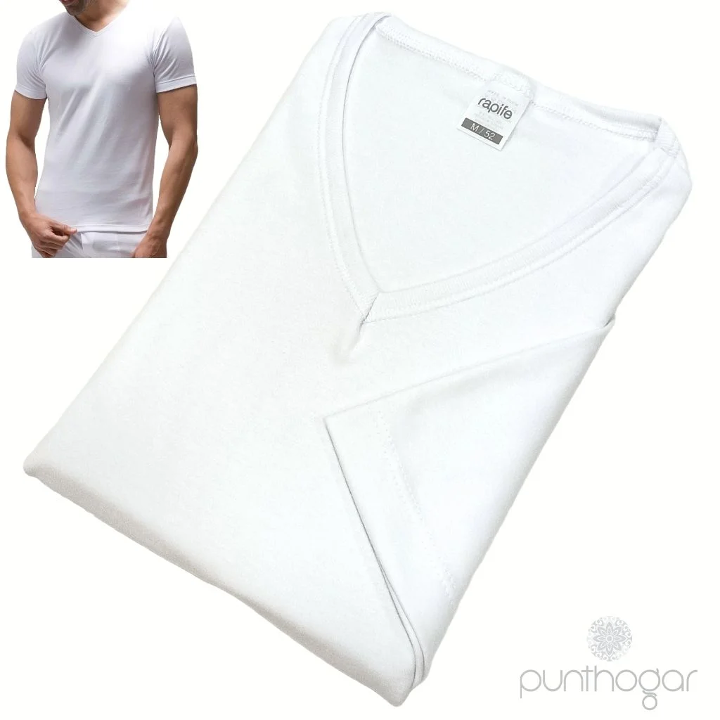 La camiseta interior Rapife 821 es una prenda de manga corta y cuello pico, ideal para el invierno. Está confeccionada en 100% algodón con un tratamiento felpado o perchado que proporciona mayor confort térmico. Es perfecta para mantener el calor en climas fríos y es muy duradera.