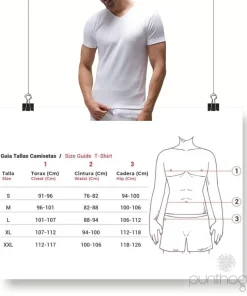 - Diseño. La camiseta tiene mangas cortas, lo que la hace adecuada para usar debajo de otras prendas sin generar molestias ni volumen adicional. El cuello en forma de pico ofrece un aspecto moderno y discreto, permitiendo que la camiseta se adapte bien a cualquier tipo de vestimenta, tanto casual como formal.