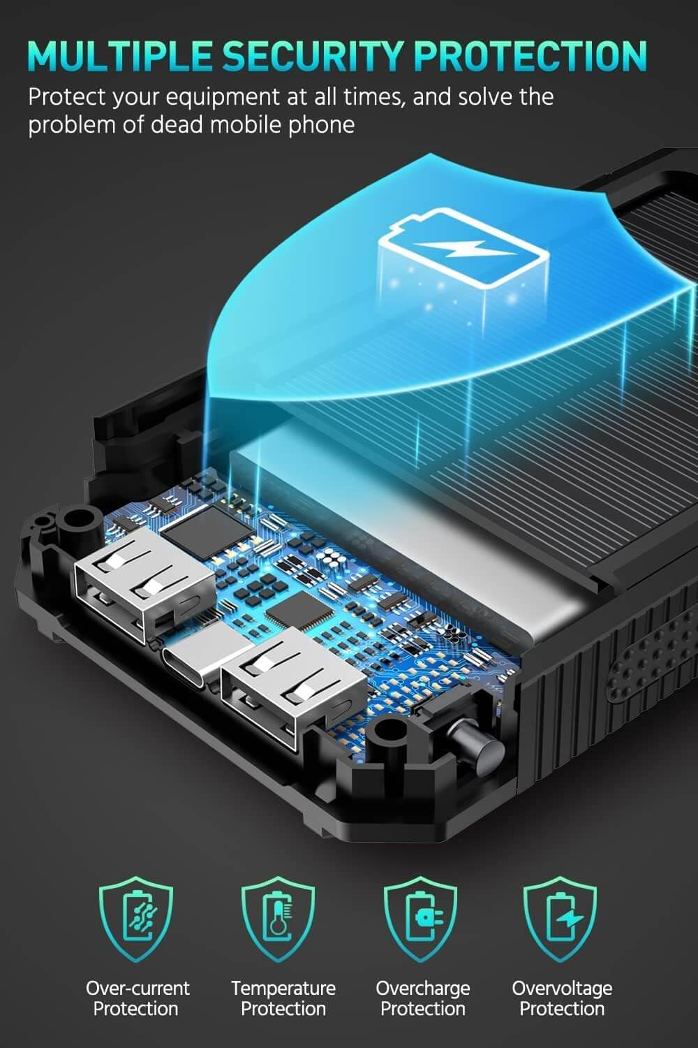 - Cargador de energía solar portátil de alta capacidad: batería de litio de alta capacidad incorporada de 36800mAh equipada con un panel solar de alto rendimiento, antiexplosión, ligero y confiable. Larga vida útil con más de 1800 tiempos de recarga. que podría recargar la batería bajo la luz solar, ecológico e ideal para uso en exteriores. Hecho de material ABS + PC duradero y resistente que la protege de la lluvia, la suciedad y los golpes.