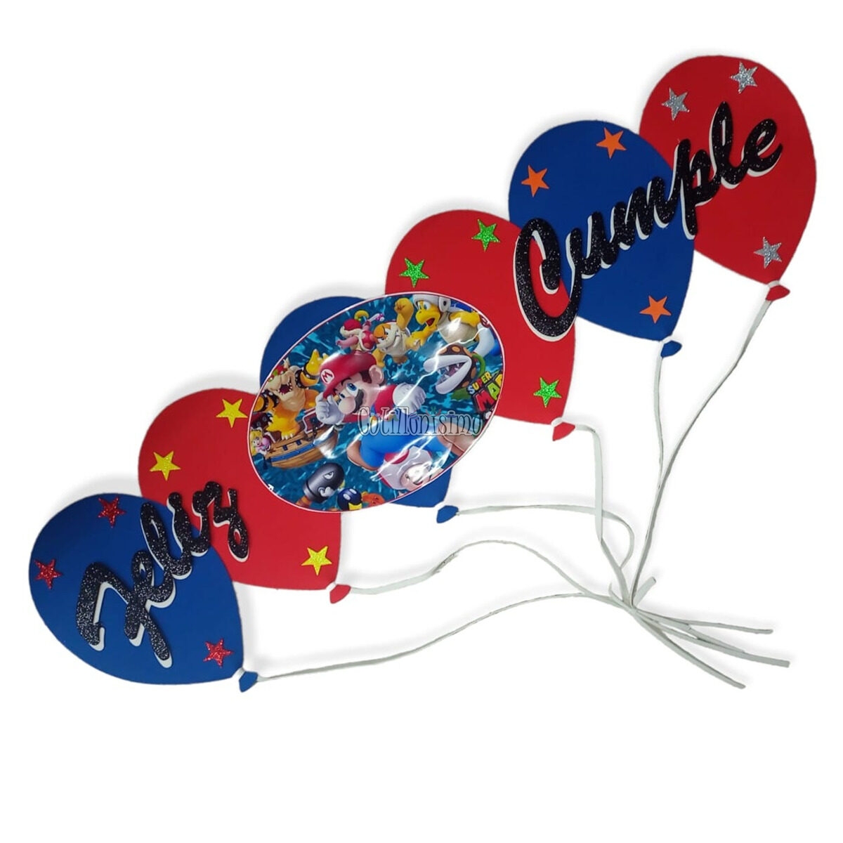 Cartel Feliz Cumpleaños Goma Eva Super Mario Bros y sus amigos! (Toad, Peach, Yoshi, Bowser)