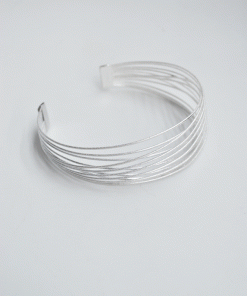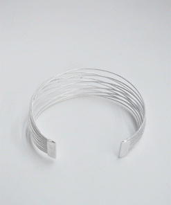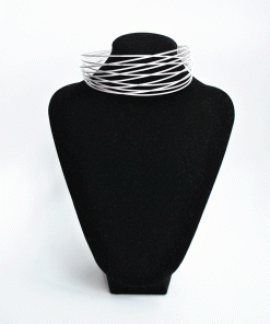 R03/5364 – Bonita gargantilla choker plateada. Se trata de una gargantilla fabricada en bisutería plateada mate y decorada con varias tiras formando xx.
