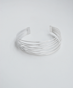R03/5364 – Bonita gargantilla choker plateada. Se trata de una gargantilla fabricada en bisutería plateada mate y decorada con varias tiras formando xx.