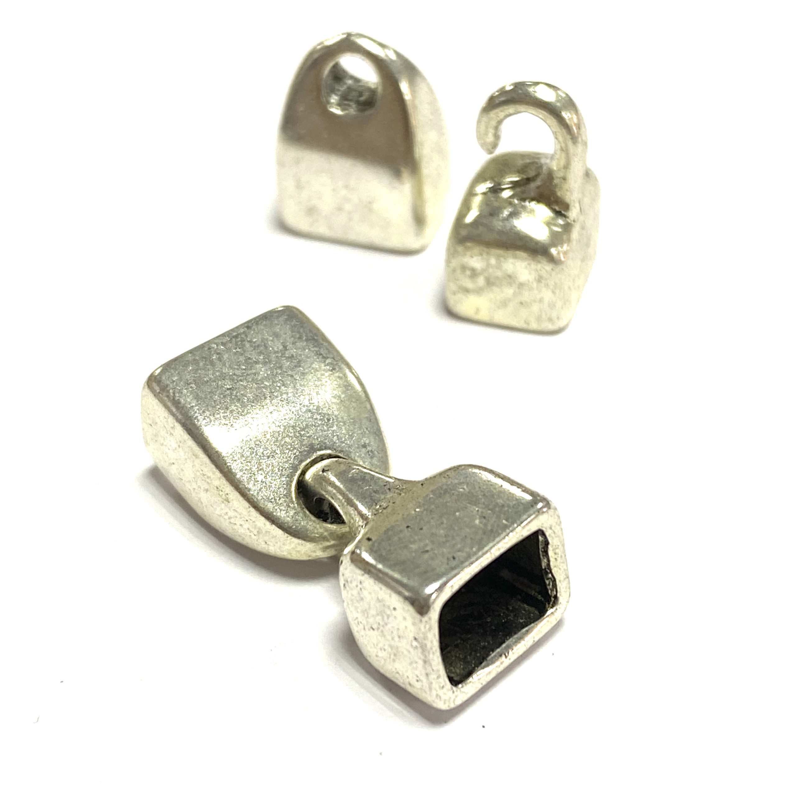 Cierre metálico de dos partes con un tamaño de 30x13mm para cordones o cintas de 10x7mm de grosor.