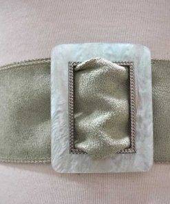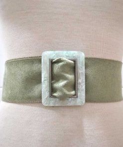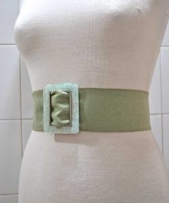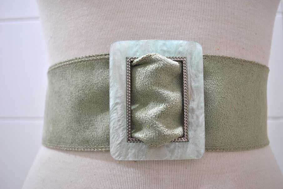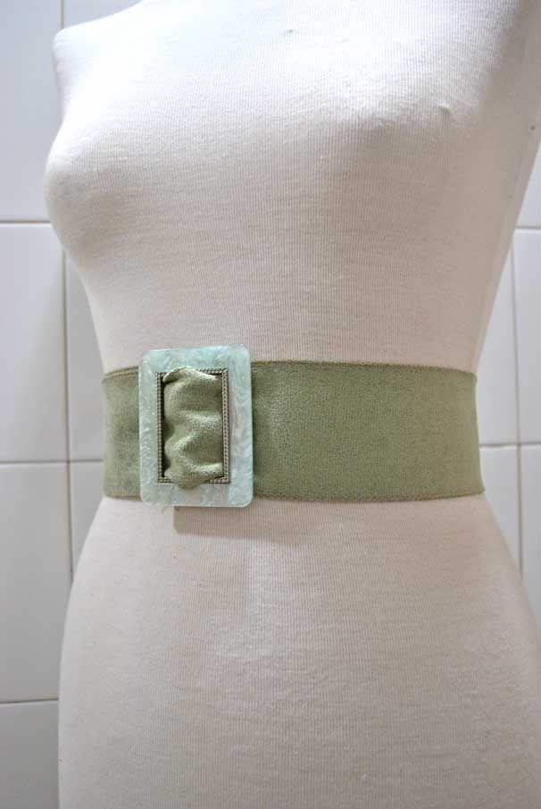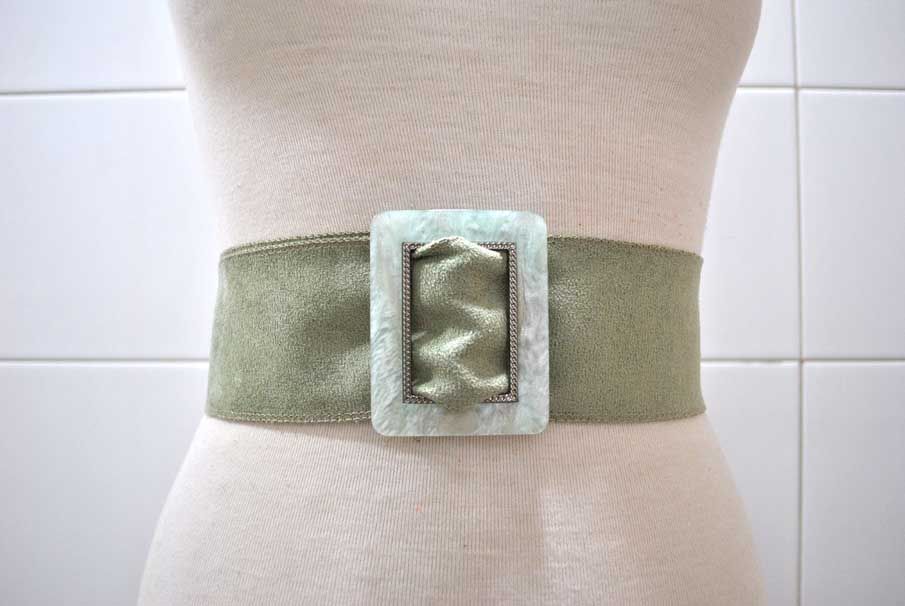 R02/4759 -Precioso y estiloso cinturón ancho , fajín. Se trata de un cinturón de 105 cm de largo, confeccionado en antelina de color VERDE MENTA. Además, presenta una bellísima hebilla de metal dorado y carey sintético.