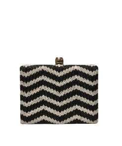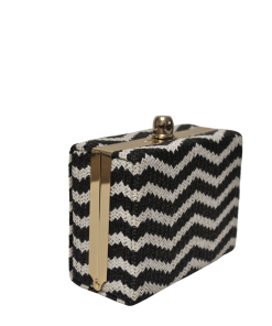 AD05526024 -Original cartera de fiesta, bolso clutch de rafia combinada en blanco y negro y, diseñado en forma de cajita. Cuenta con una original y elegante forma con el que serás la invitada perfecta, especial madrinas, tamaño muy cómodo de llevar en la mano, le quedara estupendo con vestidos de fiesta o noche en bodas, comuniones, bautizos y otros eventos, lleva la cadena dorada en el interior para colgar.