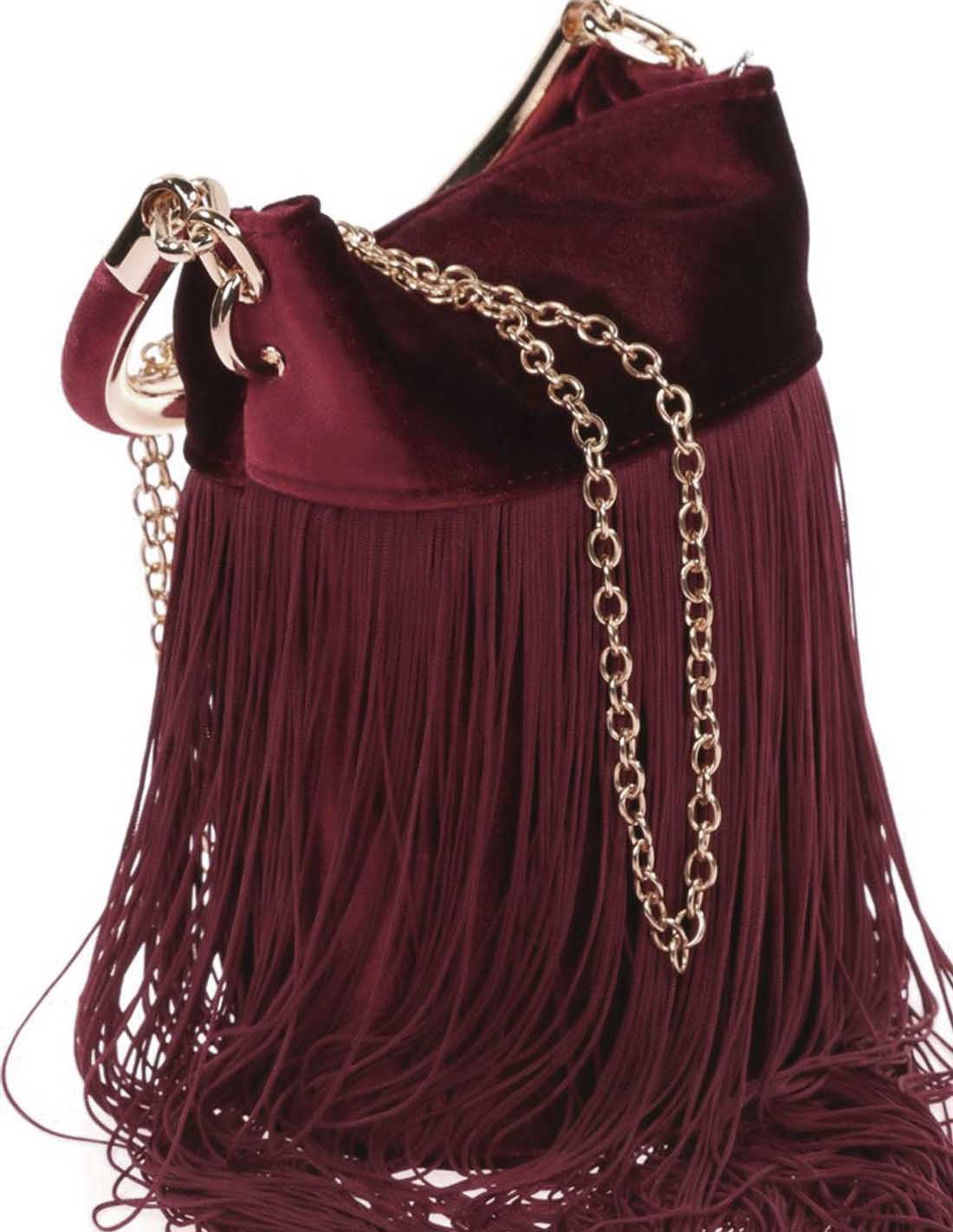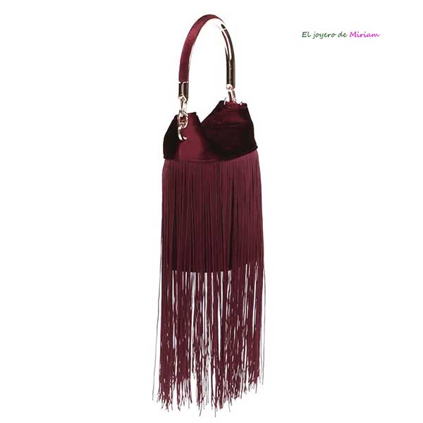 Precioso y original bolso de fiesta o clutch granate con textura de terciopelo, adornados con encantadores flecos y asa de mano que los hace irresistiblemente chic. Estos clutches coquetos son la elección perfecta para destacar en cualquier ocasión especial, ya sea una boda, comunión, bautizo, gala u otro evento importante. Con una cuidadosa atención al detalle y un diseño que combina a la perfección la sofisticación con un toque de coquetería, estos bolsos están destinados a convertirte en la invitada o madrina perfecta. Su estilo atemporal y su elegancia discreta los hacen adecuados para una amplia gama de eventos, mientras que su calidad excepcional garantiza que te acompañen en múltiples celebraciones con el mismo esplendor que la primera vez.