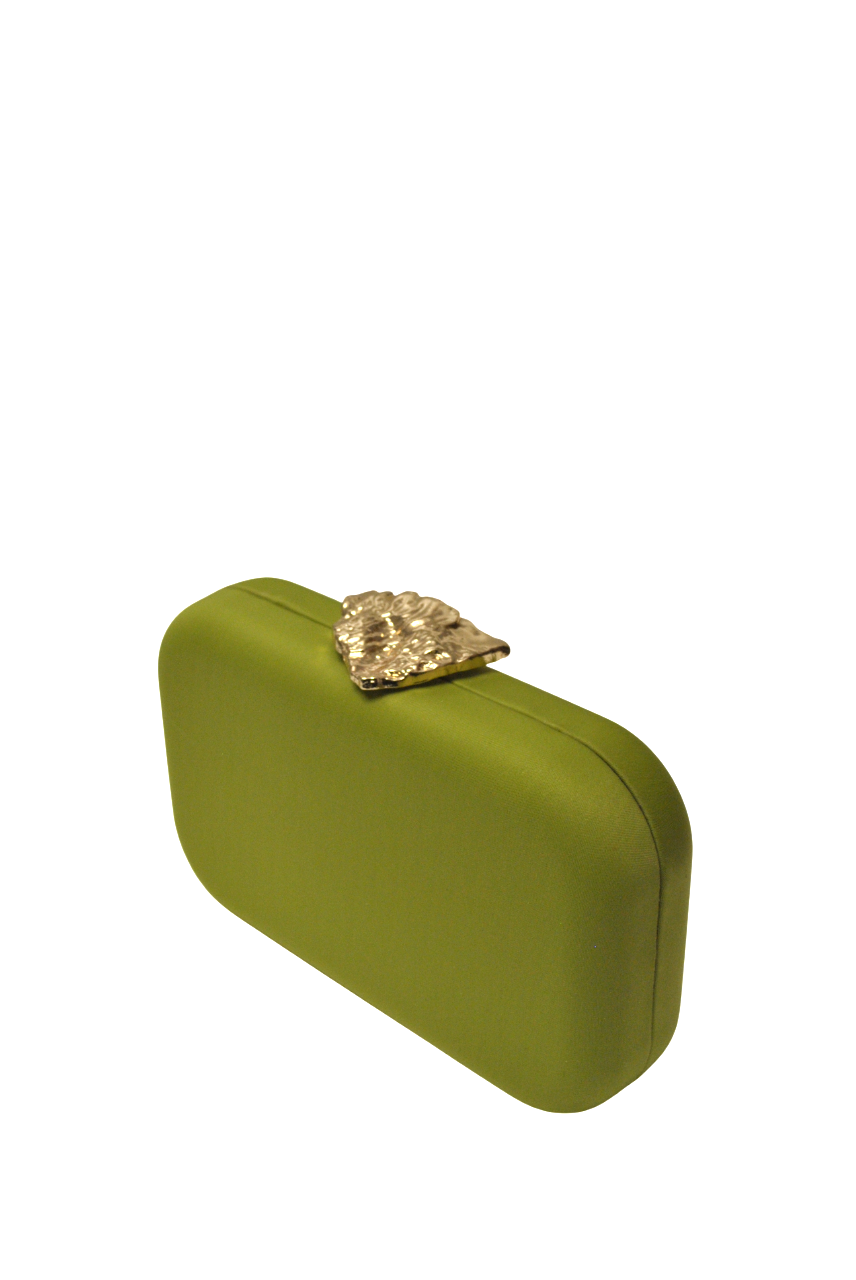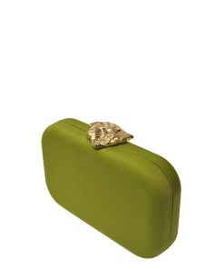 TD09526014 – Precioso bolso de fiesta clutch verde lima. Se trata de un bolso diseñado en ligera forma ovalada y forrado en tela de raso verde lima. Presenta un original broche metálico y, además, se incluye una cadena larga en el interior para llevarlo colgado.