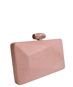 R04/5678 – Elegante y original bolso de fiesta tono ROSA EMPOLVADO. Se trata de un bolso forrado en tela de antelina suave de color rosa. Destaca un broche ovalado de resina símil mármol. Además incluye cadena dorada en el interior para llevarlo más cómodamente colgado.