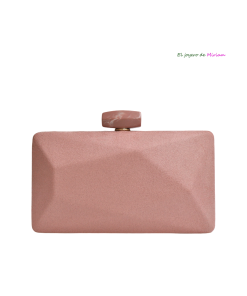 R04/5678 – Elegante y original bolso de fiesta tono ROSA EMPOLVADO. Se trata de un bolso forrado en tela de antelina suave de color rosa. Destaca un broche ovalado de resina símil mármol. Además incluye cadena dorada en el interior para llevarlo más cómodamente colgado.