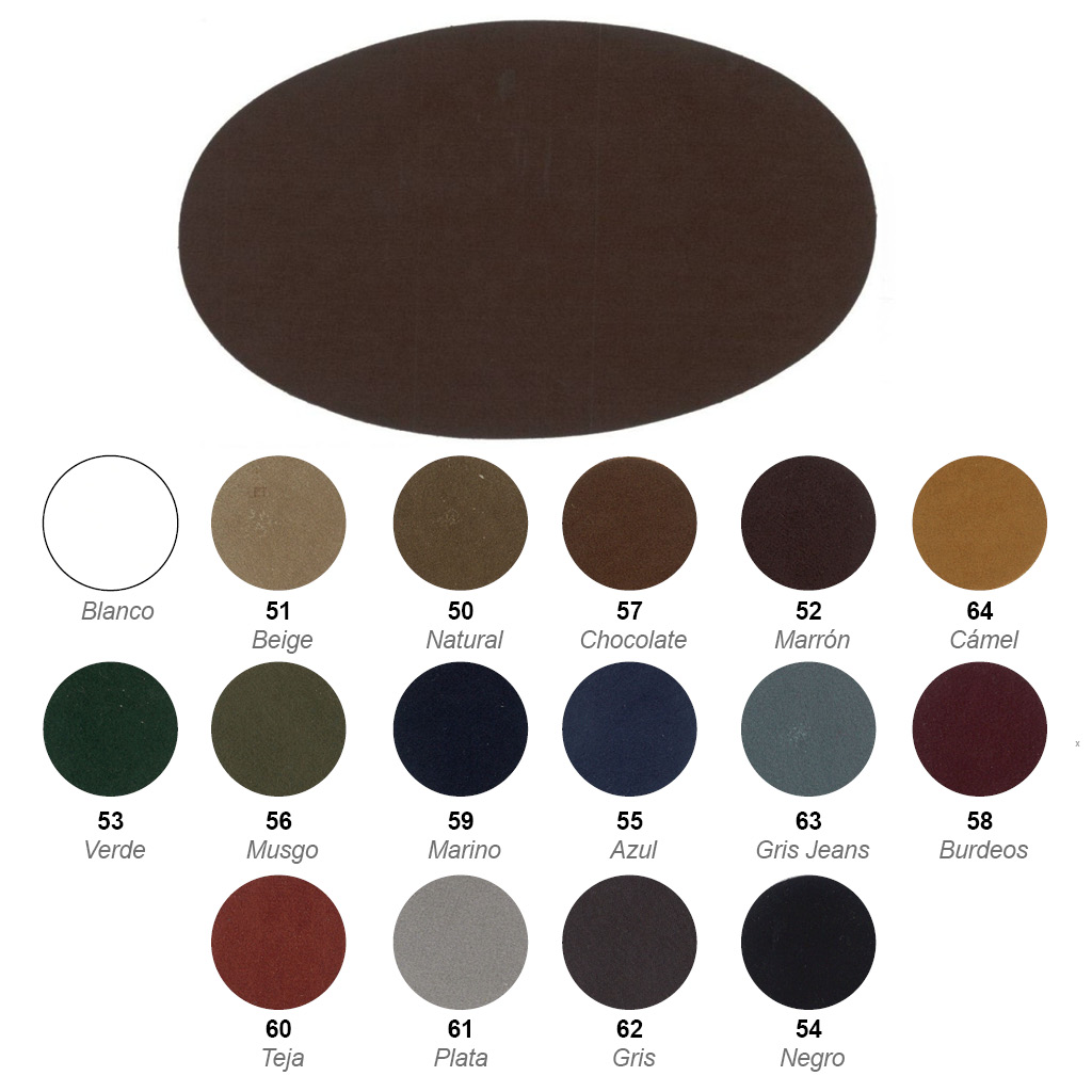 | Color | 50 / BEIGE TOSTADO, 51 / BEIGE, 52 / MARRON OSCURO, 53 / VERDE BOTELLA, 54 / NEGRO, 55 / MARINO CLARO, 56 / VERDE MUSGO |