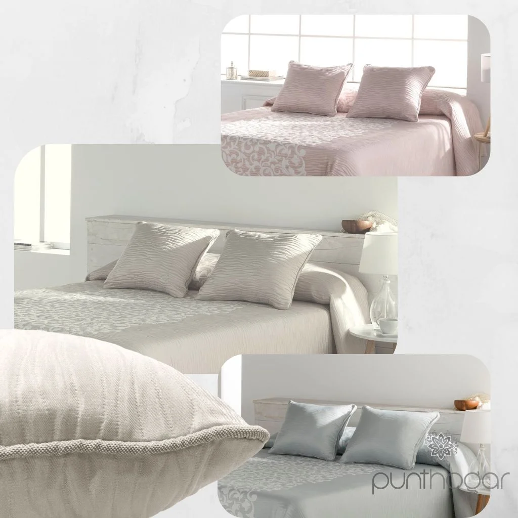 Cojín decorativo AMAL 50X60 alta calidad de la firma Tejidos JVR en textura lisa coarrugada en forma de ondas. Confeccionado con cremallera y cordón perimetral, disponible el cojín o solo la funda.