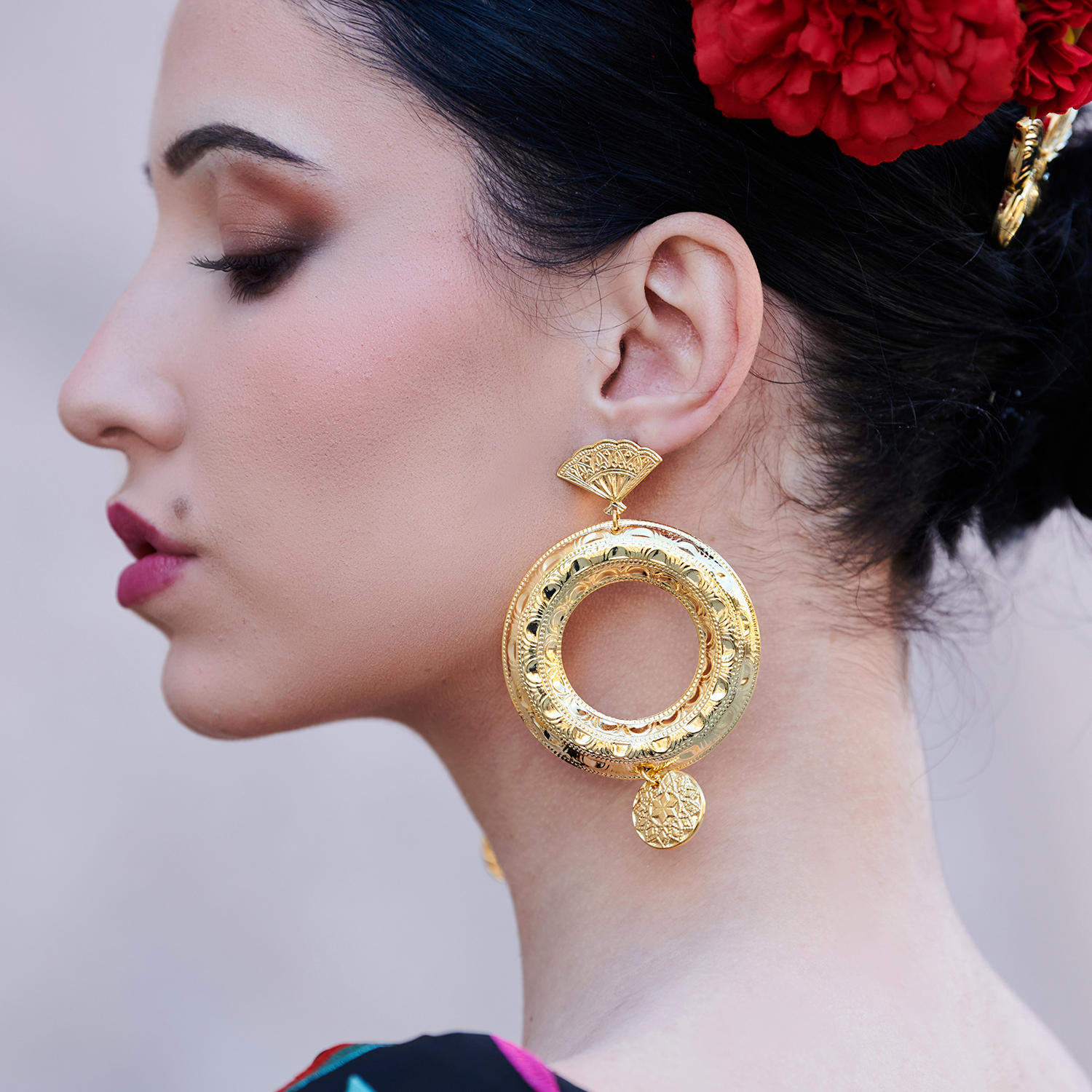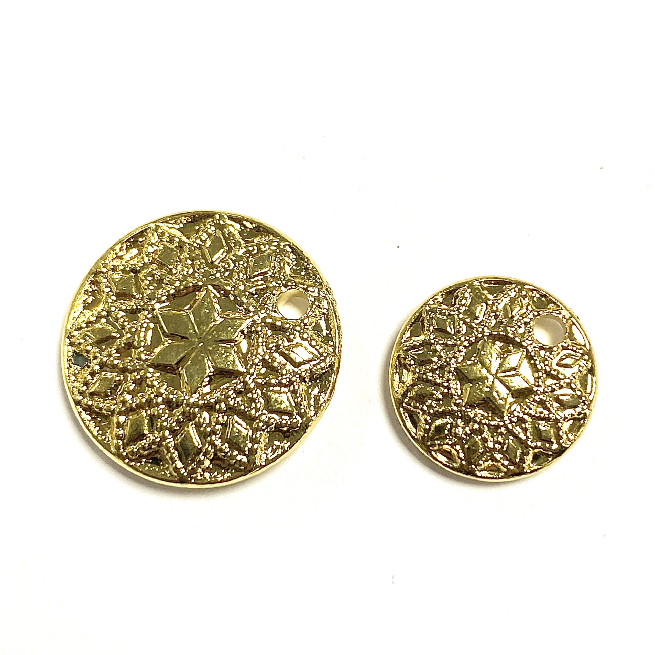 Colgante de plástico chapado en oro en dos tamaños, ideal para pendientes, pulseras, complementos de flamenca…