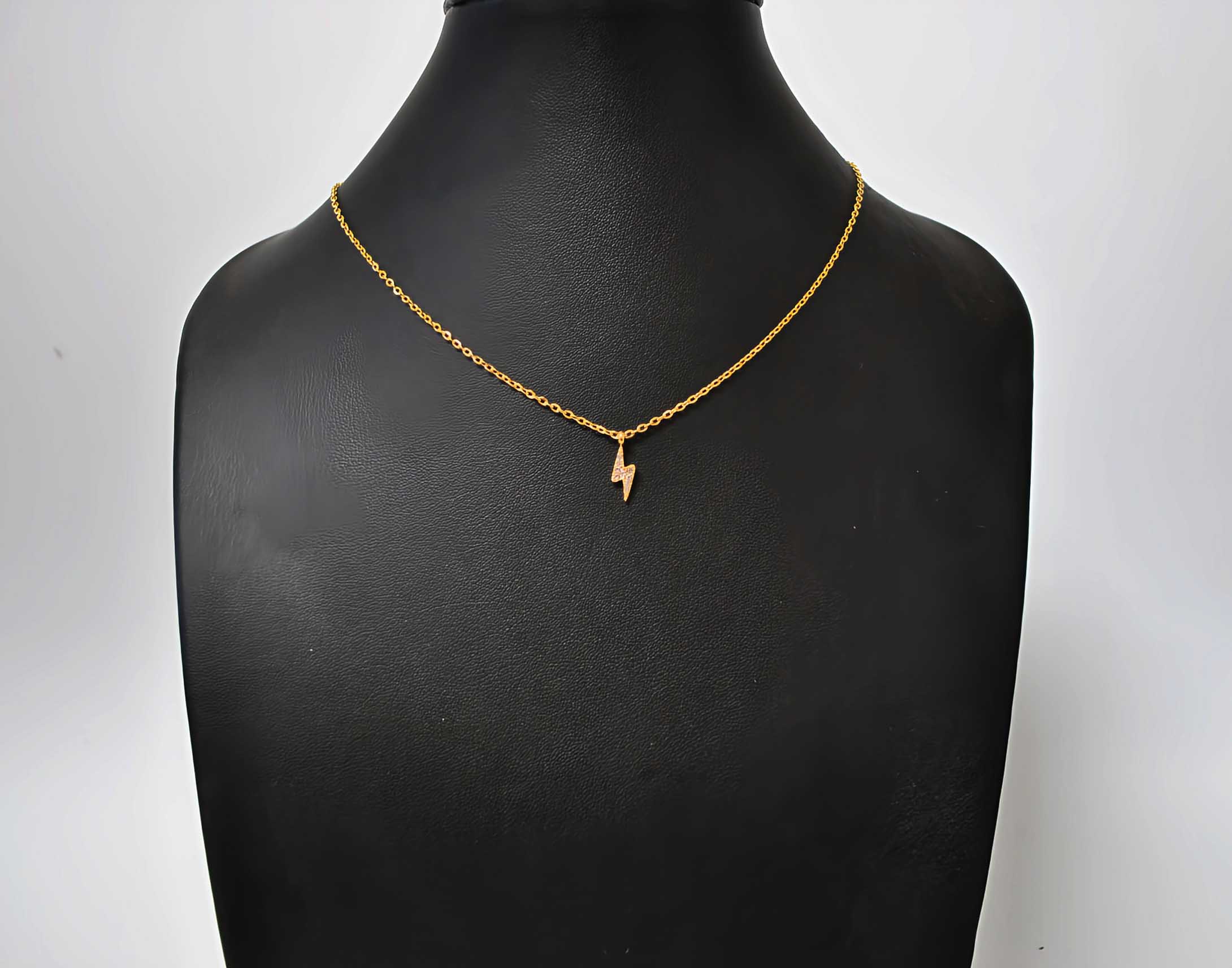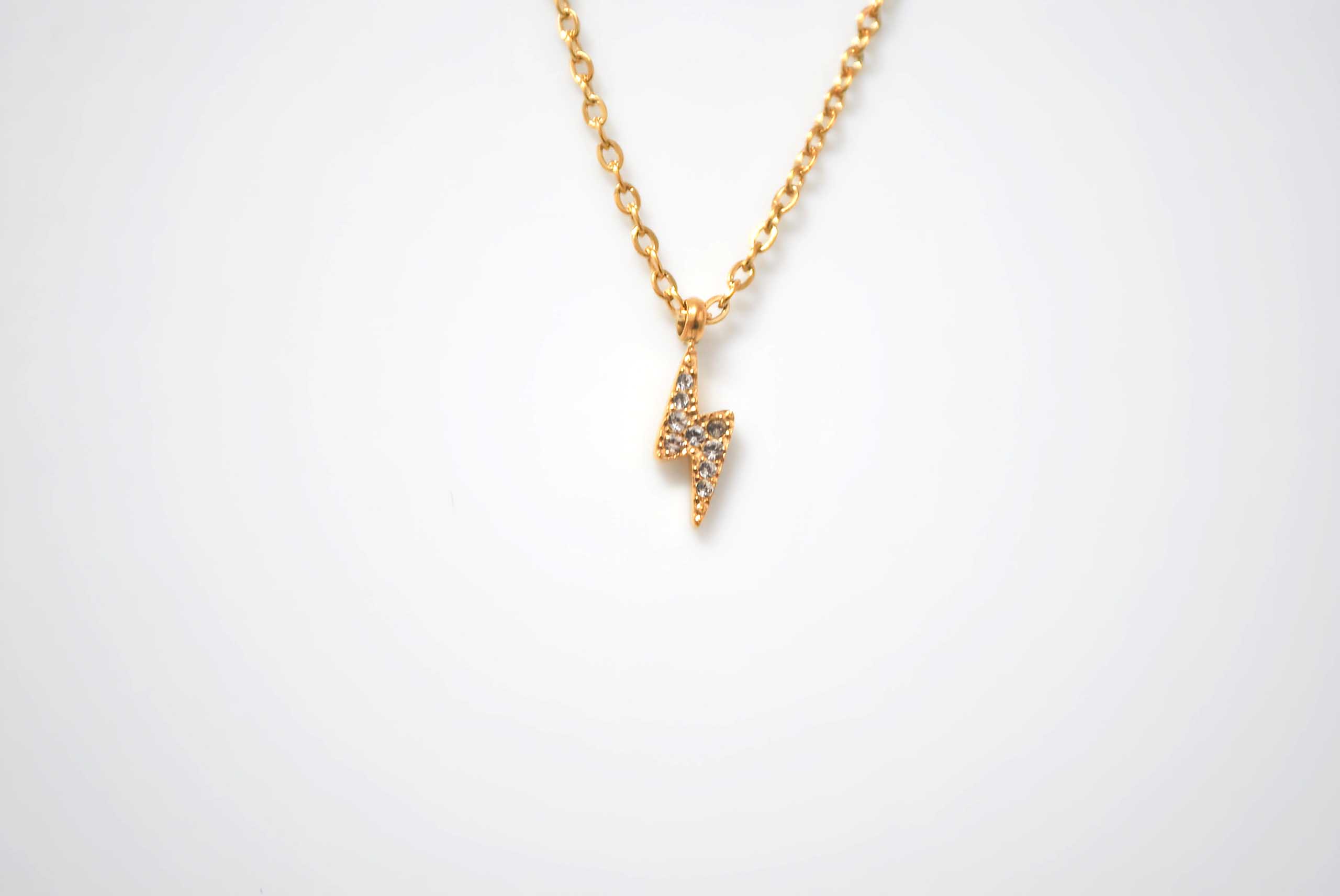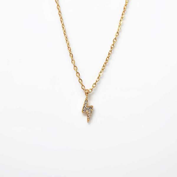 REF: 4978 – Precioso y elegante colgante dorado de acero inoxidable. Se trata de un colgante con cadena y con la decoración de un rayo con pequeñas circonitas.